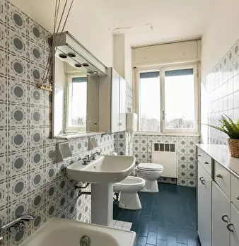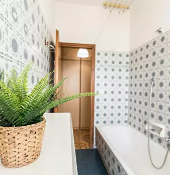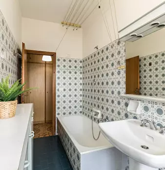 Molto servita,di bus ,banche ,supermercati farmacia ,residenziale strada privata 10 minuti dal centro città ( due torri),vicino al parco dei giardini margherita .Grande finestra con vista su giardino.Cuciba completamente attrezzata anche con lavat...