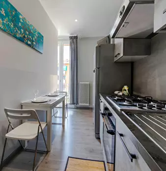 Situato su due piani, piano terra e primo piano, luminoso e spazioso. 200 mq di superficie. È composto da grande e moderna cucina abitabile con loggia e 3 stanze singole tutte con bagno privato. L'appartamento è ottimamente ristrutturato in funzio...