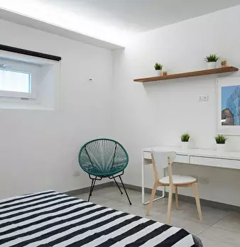 Bright and comfortable room, composed of a bed, a wardrobe, a desk, and a chair. The room is situated in an apartment on the second floor with 2 single bedrooms, one bathroom, and a fully equipped kitchen. The bills for water, gas, electricity, ...