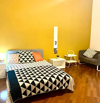 Benvenuti nella Suite Michelangelo una spaziosa e luminosa camera privata all’interno di un appartamento con altre camere indipendenti. Nella camera troverai un comodo divano letto con due materassi, formando un letto matrimoniale e un armadio do...