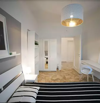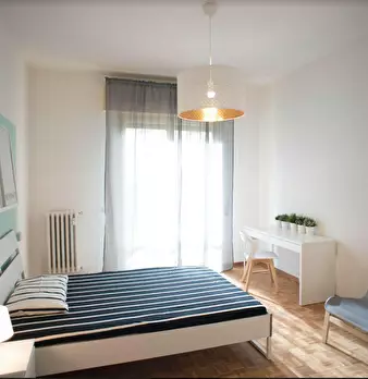 Room in shared apartment! The house is 130sqm and consists of a large entrance hall, kitchen with balcony, two bathrooms and 4 large bedrooms, all furnished new and modern, very bright, lift. The closest stations to Via Claudio Monteverdi are: B...