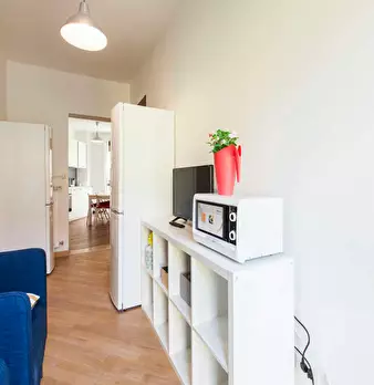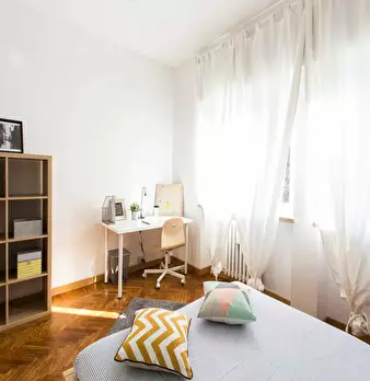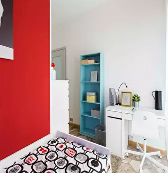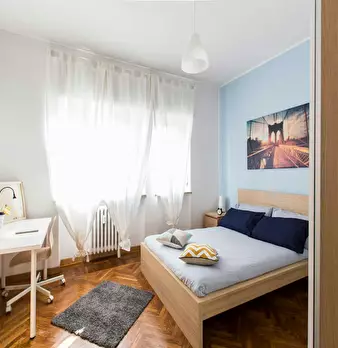 Located in the lively *Lorenteggio / Bande Nere / Primaticcio / Bisceglie* area, this bright room offers a comfortable city base close to Milan's everyday amenities. Highlights: a spacious private room of 16 m2 in a 3-room flat, queen-size bed, pr...
