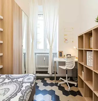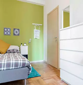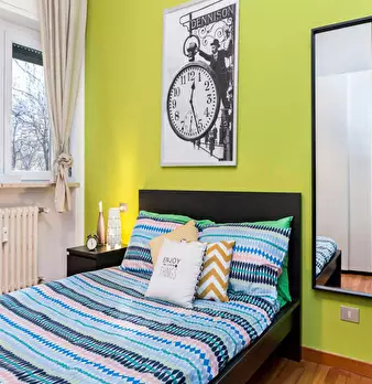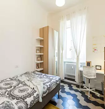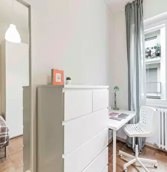 Located in the vibrant *Certosa / Bovisa / Affori* district, this bright room offers a comfortable living space close to Milan’s northern hubs. The room is a queen-size, 14.72 m2 private space within a 120 m2 flat. Highlights include a private stu...