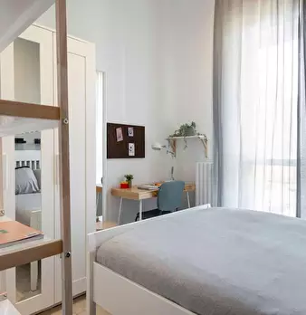 Single room in a shared apartment, composed by 6 bedrooms and 3 bathrooms. Of about 10 sqm with a one and a half bed and a work station. With wifi, concierge services, dishwasher, washing machine. Energy class: G, IPE 212.54 Kwh/Sqm year. Curren...