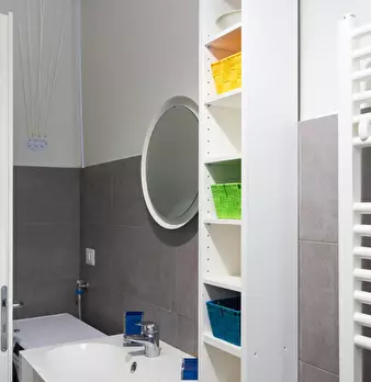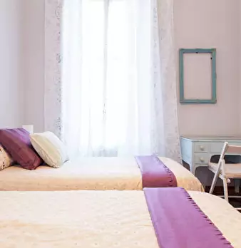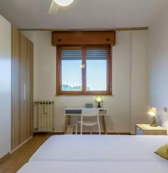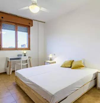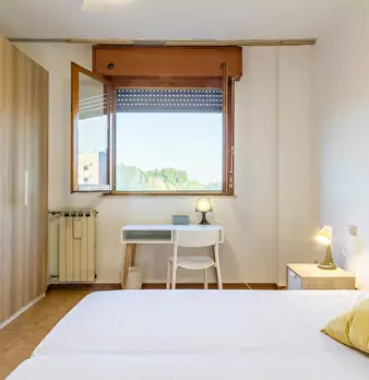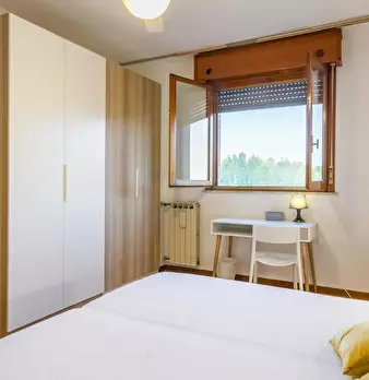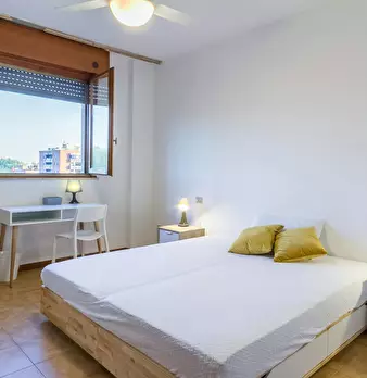Four-room apartment with 3 single rooms, entrance hall, kitchen and bathroom. Each room has a queen-size bed, a desk and a wardrobe. 5 min walk from the red metro station DE ANGELI M1. RENTAL CONDITION: - Utilities are excluded, in the amount spe...