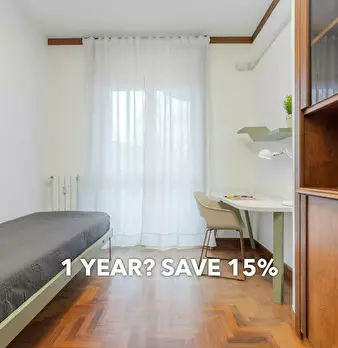 Single room in a shared apartment, composed by 5 bedrooms and 2 bathrooms. Of about 15 sqm with a one and a half bed and a work station. With wifi, dishwasher, washing machine. Energy class: E, IPE 114.79 Kwh/Sqm year. Current tenants: 3: 23, Fe...