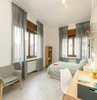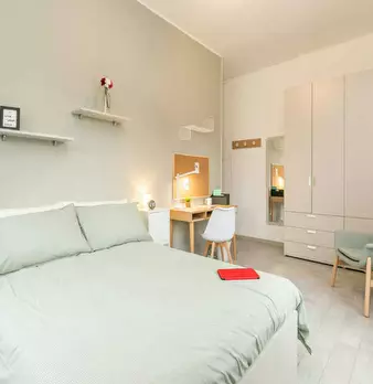 Single room in a shared apartment, composed by 10 bedrooms and 3 bathrooms. Of about 18 sqm with a double bed and a work station. With wifi, concierge services, dishwasher, washing machine. Energy class: D, IPE 88.21 Kwh/Sqm year. Current tenant...