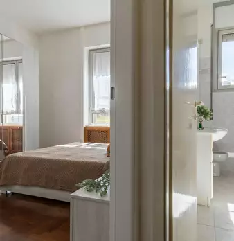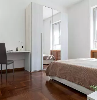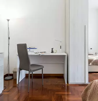 Welcome to this cosy and quiet single room, specially designed for Young people in a pretty cottage in the Baggio district. The room, equipped with a French bed (square and a half), a large wardrobe and a desk, offers a quiet and comfortable envir...
