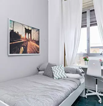 Set in the lively *Bicocca / Monza / Casoretto* area, this bright room offers a comfortable stay close to Milan's northern districts and local services. The private room is approximately 21.62 m2 inside a 3-room flat (80 m2) on the 7th floor. High...