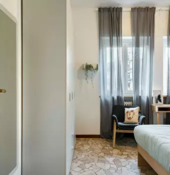 Located in the vibrant *Porta Romana / Bocconi* area, this bright room offers easy access to city life and local services. This comfortable room features a queen size bed and a private balcony. The apartment provides shared conveniences including ...