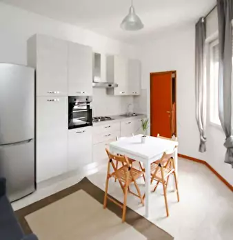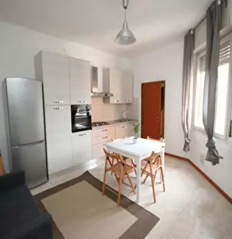The apartment located at Via Tazzoli 13 is a multi-room flat shared by university students, interns, or young professionals. It features a spacious entrance hall, 4 single bedrooms, a large fully equipped kitchen, and 1 bathroom. The apartment mea...
