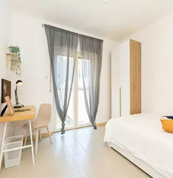 Single room in a shared apartment, composed by 3 bedrooms and 1 bathroom. Of about 16 sqm with a single bed and a work station. With wifi, concierge services, dishwasher, washing machine. Energy class: A, IPE 46.42 Kwh/Sqm year. Current tenants:...