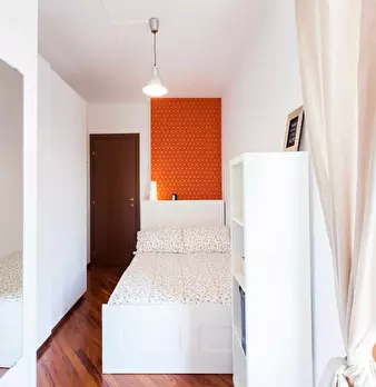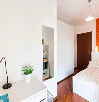 Located in *Lorenteggio / Bande Nere / Primaticcio / Bisceglie* , this compact and bright room offers a smart base in Milan close to local connections and everyday services. Comfortable *Room* of 9.55 m2 with a Queen size bed layout option and acc...