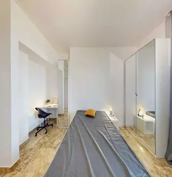 Discover a bright room in *Lorenteggio / Bande Nere / Primaticcio / Bisceglie* , a convenient neighbourhood close to Milan's vibrant districts and transport links. This comfortable single room (10 m2) is in a 3-room flat (80 m2) on the 5th floor a...