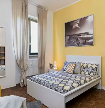 Located in *Cesano Boscone* , this bright room sits in a friendly district with quick access to local services and transport links. The room is a comfortable queen-size space of 16 m2 with access to a *balcony*. The apartment offers shared conveni...