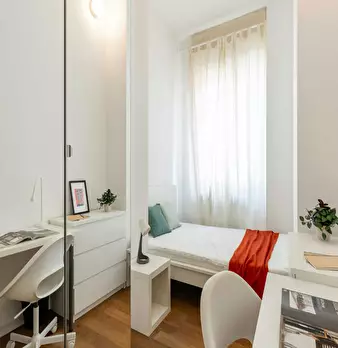 Single room in a shared apartment, composed by 4 bedrooms and 1 bathroom. Of about 17 sqm with a one and a half bed and a work station. With wifi, concierge services, dishwasher, washing machine. Energy class: F, IPE 201.31 Kwh/Sqm year. Current...