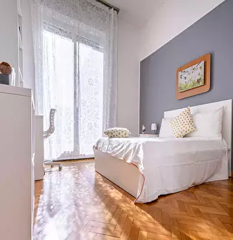 Located in *Lorenteggio / Bande Nere / Primaticcio / Bisceglie* , this bright single room offers a comfortable 17 m2 private space in a friendly shared flat close to Milan's west side. Highlights: double bed size, private bathroom in the apartment...