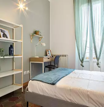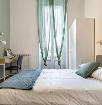 Single room in a shared apartment, composed by 7 bedrooms and 3 bathrooms. Of about 17 sqm with a one and a half bed and a work station. With wifi, concierge services, dishwasher, washing machine. Energy class: G, IPE 180.37 Kwh/Sqm year. Curren...