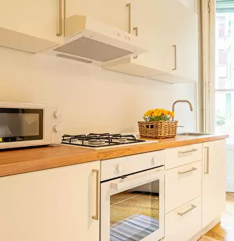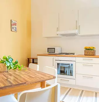The apartment - about 50 square meters - consists of 3 bedrooms (2 singles + 1 twin), a kitchen/living room and a bathroom. The flat has a balcony overlooking public greenery that gives the entire apartment silence and tranquility. INCLUDED SERVIC...