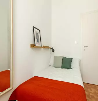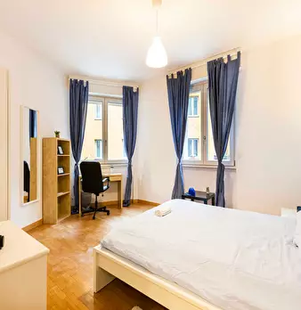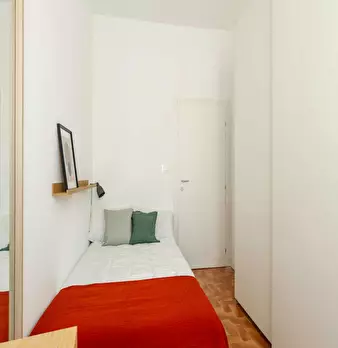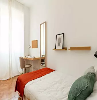 Discover comfortable living in the vibrant *Lorenteggio / Bande Nere / Primaticcio / Bisceglie* area, a lively neighborhood with great transport links and local shops. This bright room in a 3-room flat offers 11.27 m2 of private space and access t...