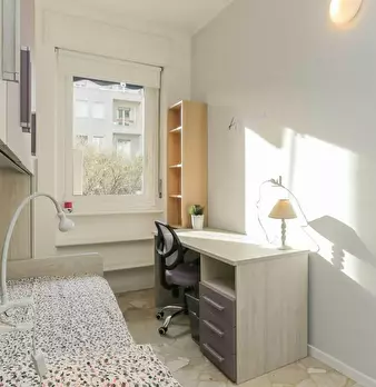 ✨ Spacious Bedroom with Ensuite Bathroom✨ This bright and comfortable double room with an ensuite bathroom is available for rent in Milan. The room features a cozy double bed, a desk for work or study, and ample storage space. Located in a sha...