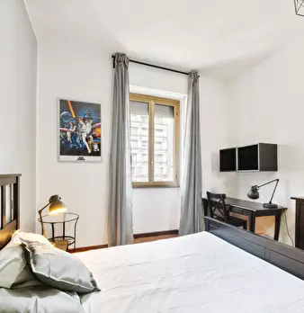 Located in *Lorenteggio / Bande Nere / Primaticcio / Bisceglie* , this bright room offers comfortable living close to Milan's vibrant west side. The room is a private *Room* of 17 m2 with a double bed. The apartment includes a modern kitchen with ...