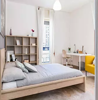 Located in *Lorenteggio / Bande Nere / Primaticcio / Bisceglie* , this bright sixth-floor room offers easy access to Milan's vibrant west side and local transport links. The *Room* is a comfortable 11 m2 with a queen-size bed. You will have access...