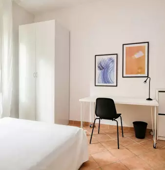 Located in the lively *Lorenteggio / Bande Nere / Primaticcio / Bisceglie* area, this bright room offers easy access to local shops and transport. This spacious room (14.8 m2) features a comfortable queen-size bed and access to a *balcony*. The ap...