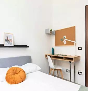 Single room in a shared apartment, composed by 7 bedrooms and 3 bathrooms. Of about 10 sqm with a one and a half bed and a work station. With wifi, concierge services, dishwasher, washing machine. Energy class: C, IPE 133.85 Kwh/Sqm year. Curren...