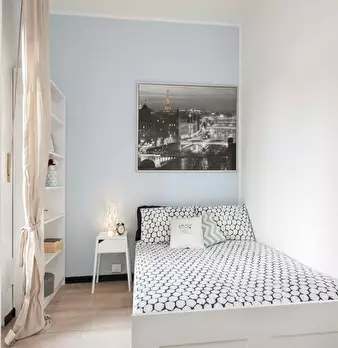 Located in the Pagano / De Angeli / Fiera district, this bright room offers easy access to local life and transport links while keeping a peaceful feel. This Queen Size Bed room (10.35 m2) features balcony access and is part of a 6-room apartment ...
