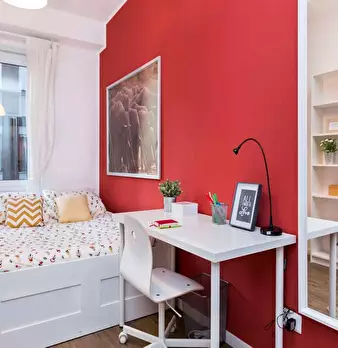 Single room in a shared apartment, composed by 10 bedrooms and 3 bathrooms. Of about 12 sqm with a one and a half bed and a work station. With wifi, concierge services, dishwasher, washing machine. Energy class: D, IPE 88.21 Kwh/Sqm year. Curren...