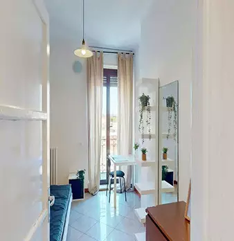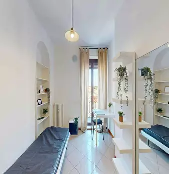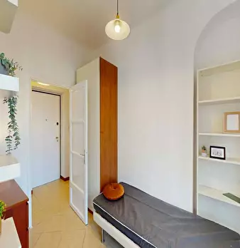 Located in the San Siro / Lampugnano / Bonola area, this bright room offers comfortable living close to local services and transport links. The room is a Queen size bed space of 12.63 m2 with balcony access and share of one bathroom. The apartment...