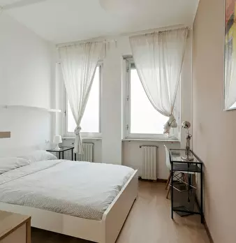 Located in the lively *Sarpi / Sempione / Monumentale* area, this bright room offers easy access to central Milan and local conveniences. The room is a comfortable queen-size space of 15.56 m2 within a 3-room flat. Enjoy a private sleeping area an...