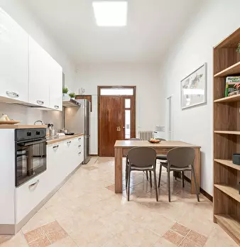 Appartamento di recente ristrutturazione composto da 4 camere da letto, ognuna dotata di bagno privato , TV e Wi-Fi. L' appartamento include una zona living comune con angolo cottura attrezzato con macchina del caffè microonde e lavastoviglie. L'a...