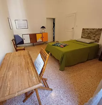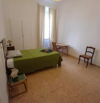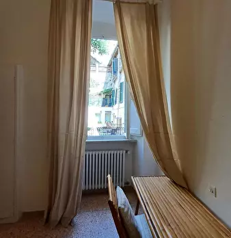Elegante camera doppia con pavimento in parquet originale, soffitto affrescato.bagno, cucina e soggiorno condivisi con una camera singola. Situato al 2o piano di un antico palazzo rinascimentale. Posizione centralissima, universita a 5 minuti a pi...