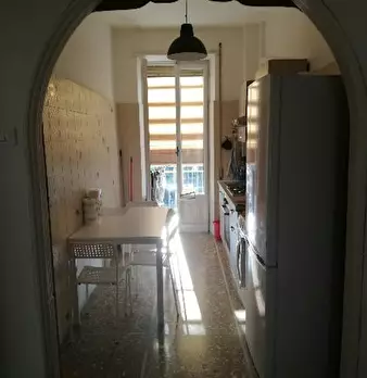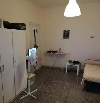 Appartamento signorile su piano rialzato di ampia metratura composto da 4 camere ,di cui una con bagno privato esterno (wc doccia e doccino;non c'è bidet) affittabile come doppia o singola; 3 camere singole e un bagno completo in comune, cucina a...