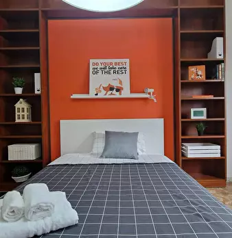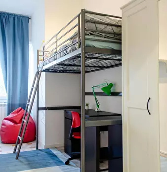 Large superior room with double bed, relax area with large sofa and coffee table, office area with study station, closet with two mirrored doors, bookcase, boot. Silent and very bright, thanks to a large window. The room is equipped ready to use: ...