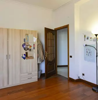 Spacious room with private fridge for rent in a 6 (hidden)/young workers apartment with 2 bathrooms in Talenti area, convenient for La Sapienza University. The apartment is on the 2nd floor with lift, it is 12 minutes walking far from Jonio metro ...