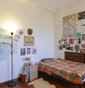 Big room with private fridge for rent in a 5 (hidden)/young workers apartment with 2 bathrooms in Piazza Bologna, near La Sapienza University. The apartment is on the 2nd floor with lift, it is 10 minutes walking far from Piazza Bologna metro stat...