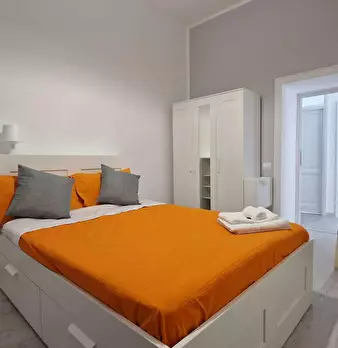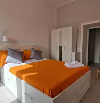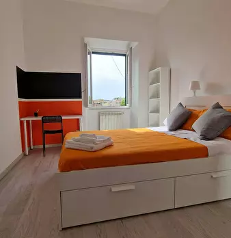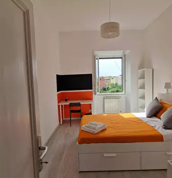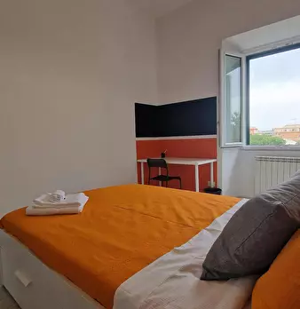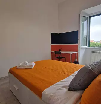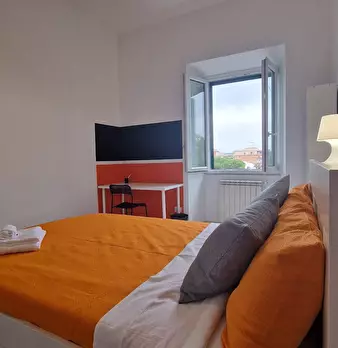 VERY BRIGHT single BEDROOM with office station, double bed and armchair bed. The room, also available for COUPLES, enjoys a pleasant view with a French window leading to the balcony with table and chairs. It's also has a wardrobe, desk, a study ch...
