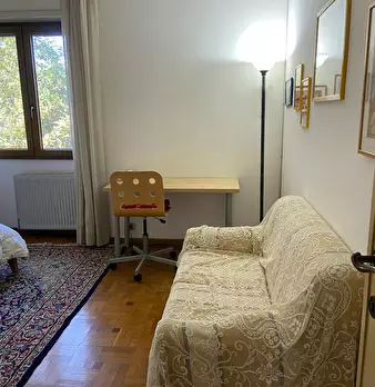 Room for rent in a spacious and bright apartment, located on the third floor in the Monteverde district. The room features a large window, a double bed, a desk, a bookcase, and a four-door wardrobe. The bathroom and kitchen are shared, and the apa...