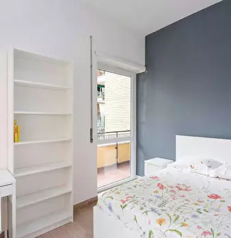 20 square meter spacious and sunny room, cosy and freshly painted, with a 120 x 200 cm large bed (24cm thick mattress). Part of a 4-bedroom apartment, recently renovated, with two shared bathrooms (with shower and window), a shared kitchen and din...