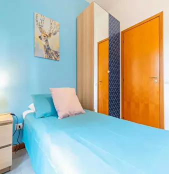 Located in the Eur / Cecchignola area, this bright room offers easy access to local life and transport links for a comfortable stay in Rome. The room is a Single Room with 18.4 m2 of space and balcony access. The apartment includes Wi‐Fi, a televi...