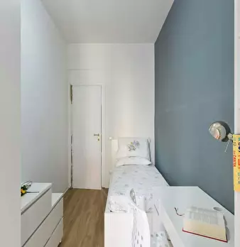 Spacious single room with double bed size and private fridge for rent in a 3 (hidden)/young workers apartment with 1 bathroom in Laurentina area, next to IFAD. The apartment is on the 3rd floor with lift, it is 20 minutes walking far from Laurenti...