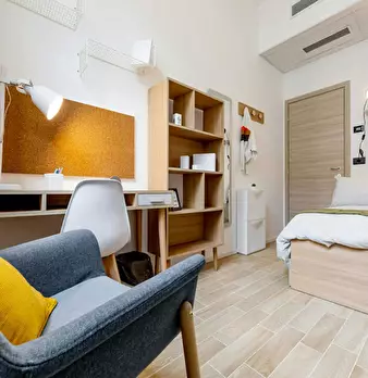 ROOM Our rooms come fully furnished with a premium mattress, a wardrobe, a warm carpet, a desk and chair. Of course, pillows, bedsheets and small items such as a bed-side table and a small lamp are always included. Depending on your needs, you can...