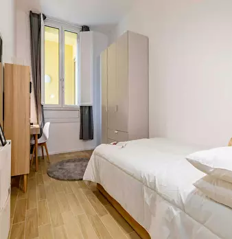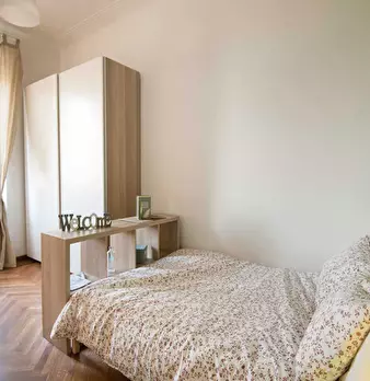 Ottima posizione, di fronte alla fermata della metropolitana, 10 minuti dalla stazione di porta nuova. L'appartamento si trova in uno stabile signorile al 5 piano con ascensore. La stanza è ad uso privato ed anche il bagno è ad uso privato.