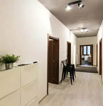 The apartment is BRAND-NEW, JUST RENOVATED, with Modern Style Furniture and it is made up of: 5 Single Rooms, among which one ROYAL SUITE WITH DOUBLE BED, A PRIVATE BATHROOM with bathtub, 3 Single Rooms with double bed, 1 Single Room with single b...