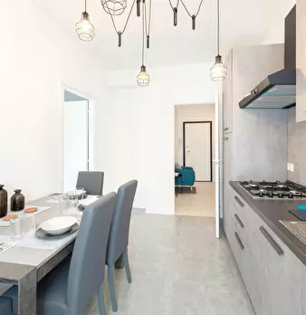 The apartment is BRAND-NEW, JUST RENOVATED, with Modern Style Furniture and it is made up of: 5 Single Rooms, among which one ROYAL SUITE WITH DOUBLE BED, A PRIVATE BATHROOM with bathtub, 3 Single Rooms with double bed, 1 Single Room with single b...