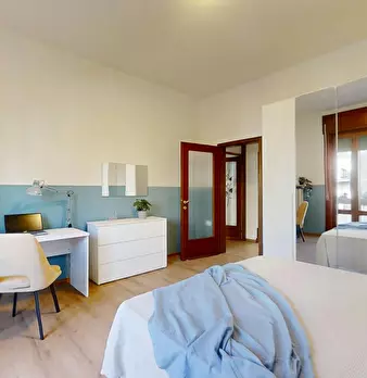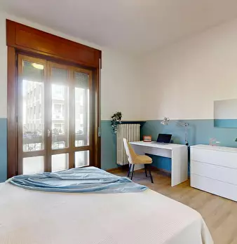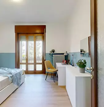 AFFITTO POSTO LETTO in una camera con due letti separati. La camera è spaziosa, è arredata con due armadi e scrivania ed ha un bagno con doccia e lavatrice. Questo posto letto puo' utilizzare anche il soggiorno, la cucina arredata con elettr...