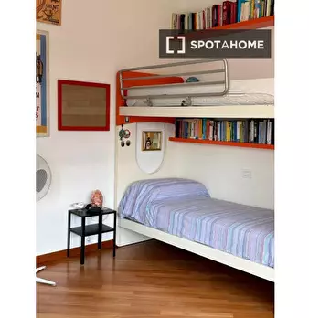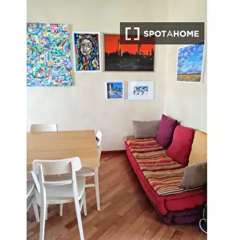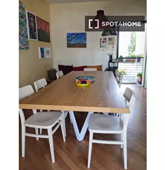 Scopri questa stanza completamente arredata in un appartamento condiviso con 8 camere da letto situato nel quartiere Marconi di Bologna. L'appartamento offre comfort moderni, tra cui una cucina attrezzata, un balcone, ascensore e una lavanderia in...